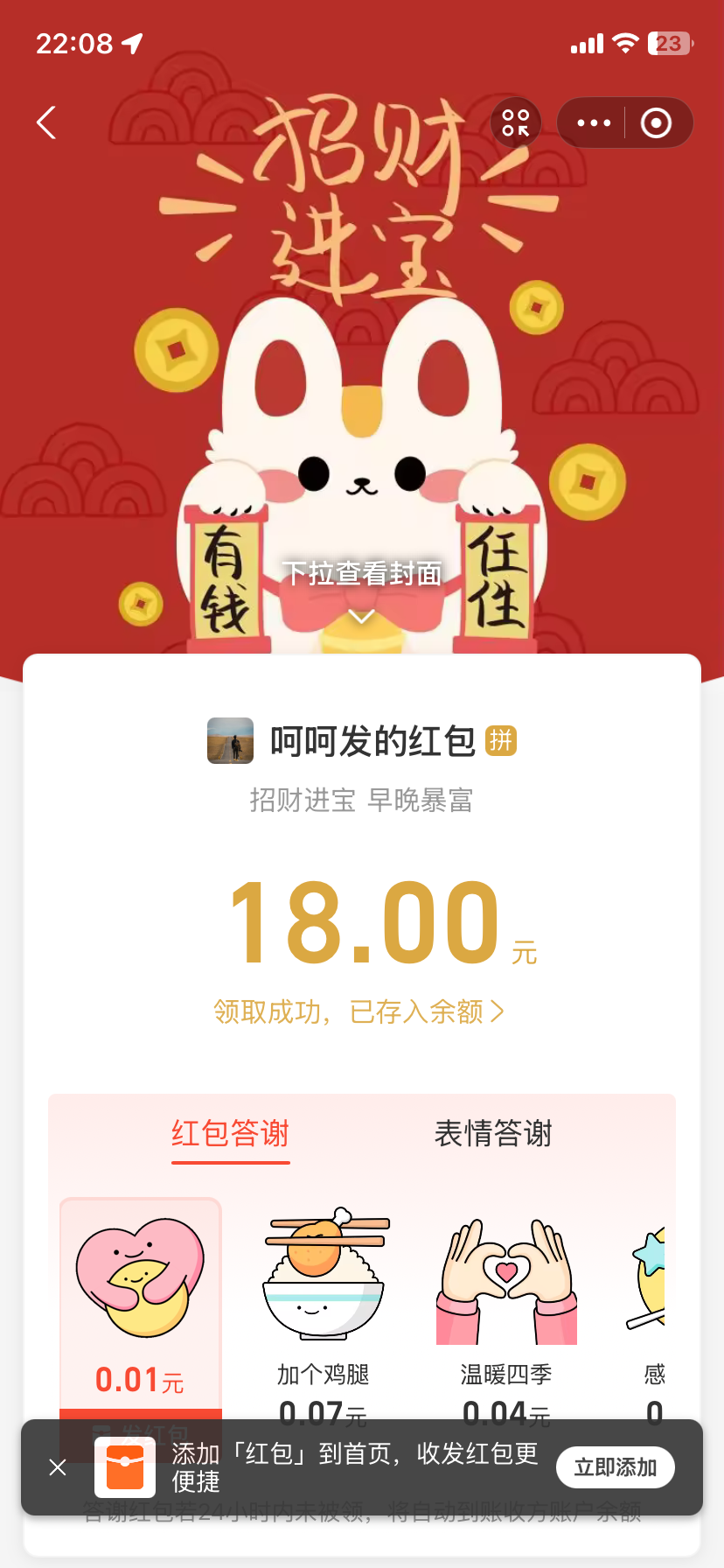 qq回下消息领猪脚饭
