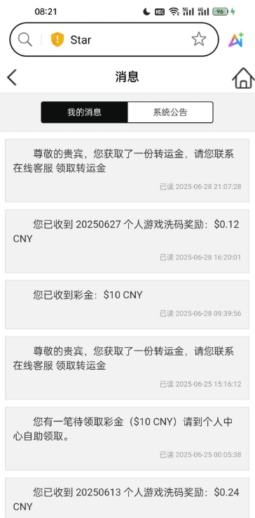 【星际XJ】—✅—站内信彩金
