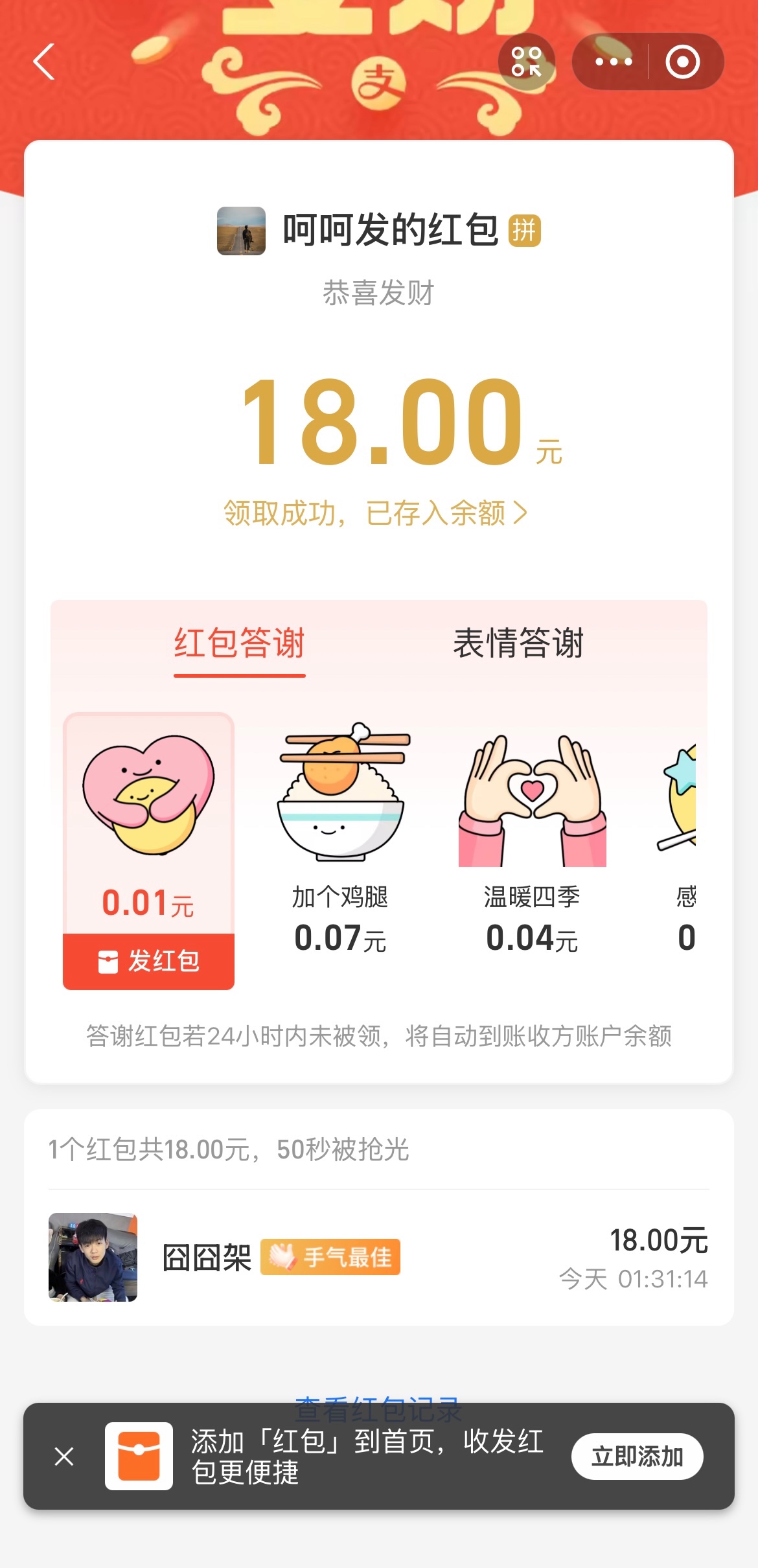 第一次中奖有点激动感谢陈哥