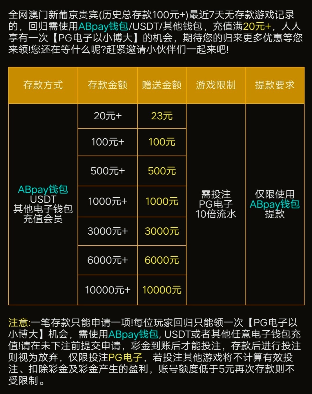 特邀碰瓷活动区自助申请,不送过段时间在看;老玩家回归,历史充值过满100+,最近7天无充值记录,可以申请以小博大,具体规则看介绍,有兴趣去看看。