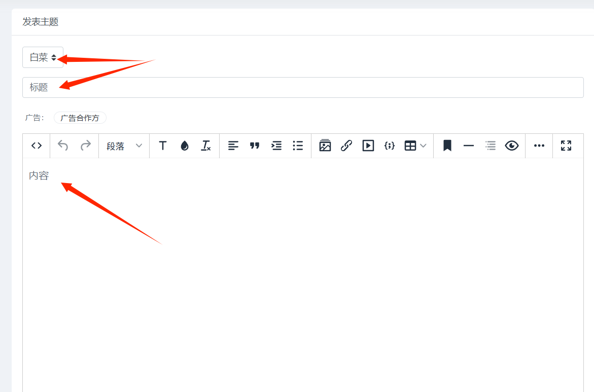 点击发帖,坛友们发帖选择白菜写上标题内容发布必须写上出款情况:自测(禁止充值),步骤,怎么领取白菜,链接和必须带成功图最后点击发表主题就完成啦~