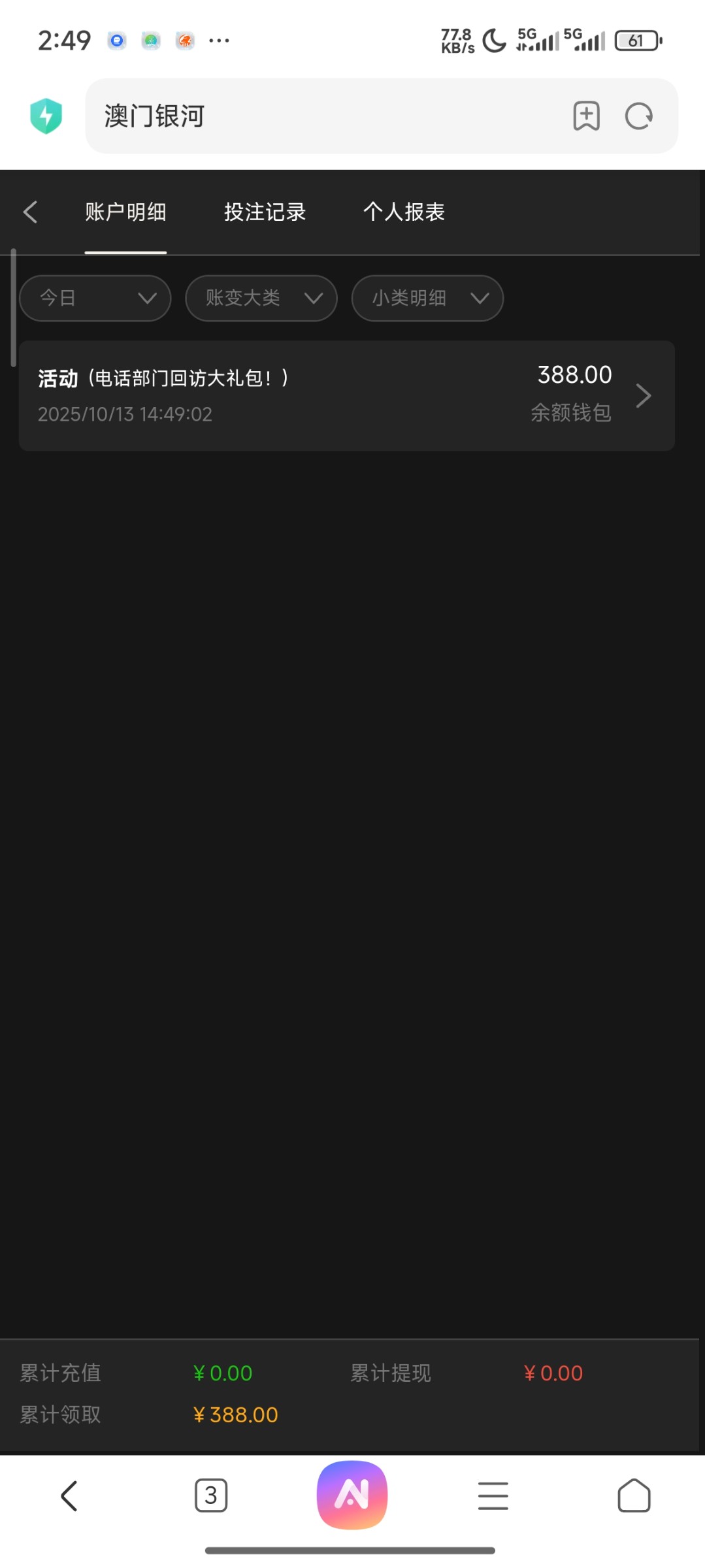 澳门银河3016送回访彩金388,注册过的都可以去申请试试