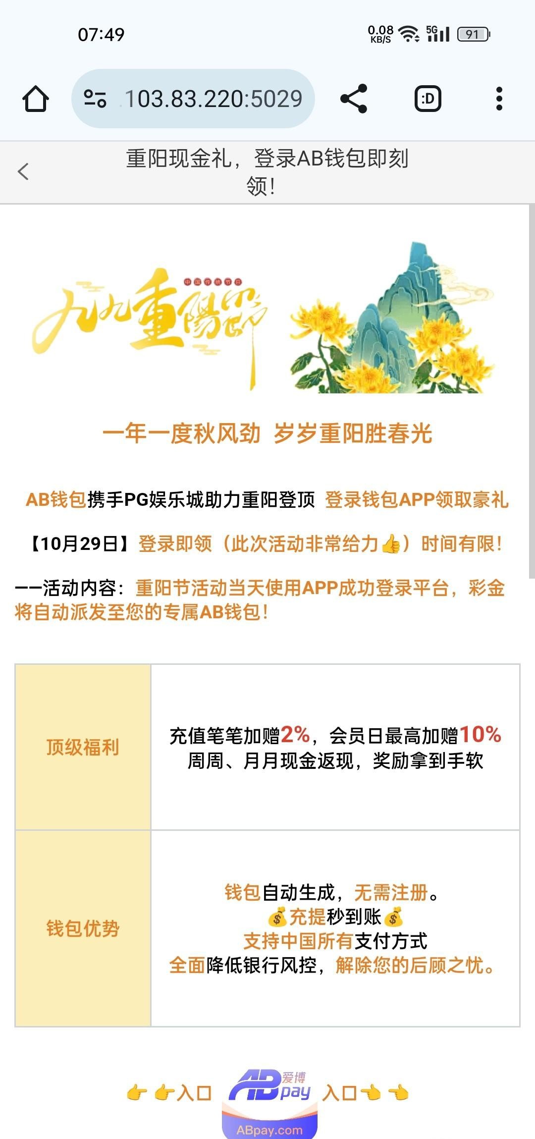 这几个台子都有重阳登录彩金,是直接派送到ab钱包里面