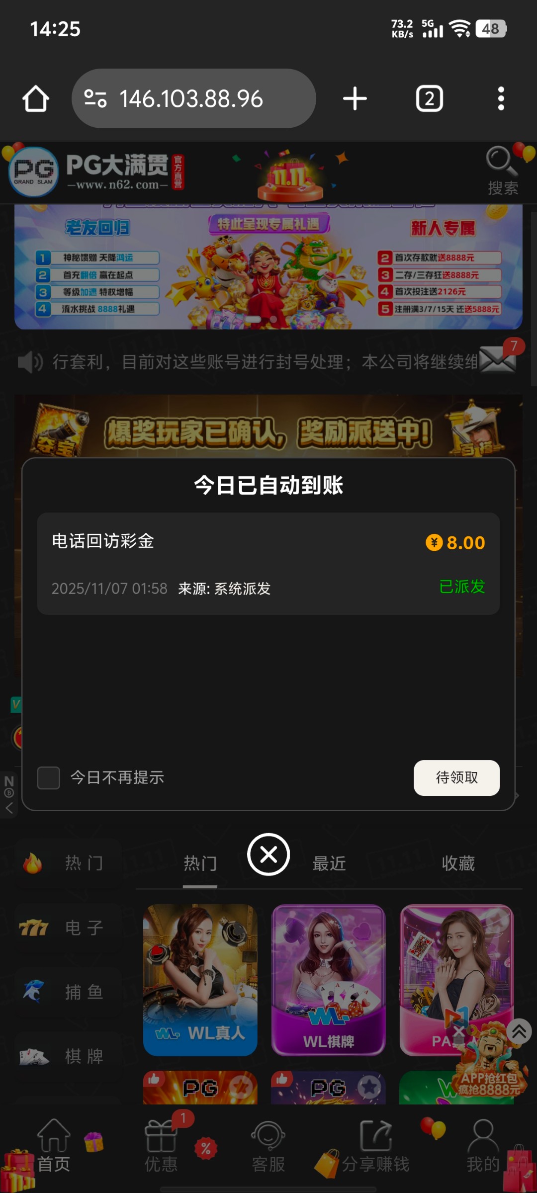 登陆找客服领取我也没接到电话