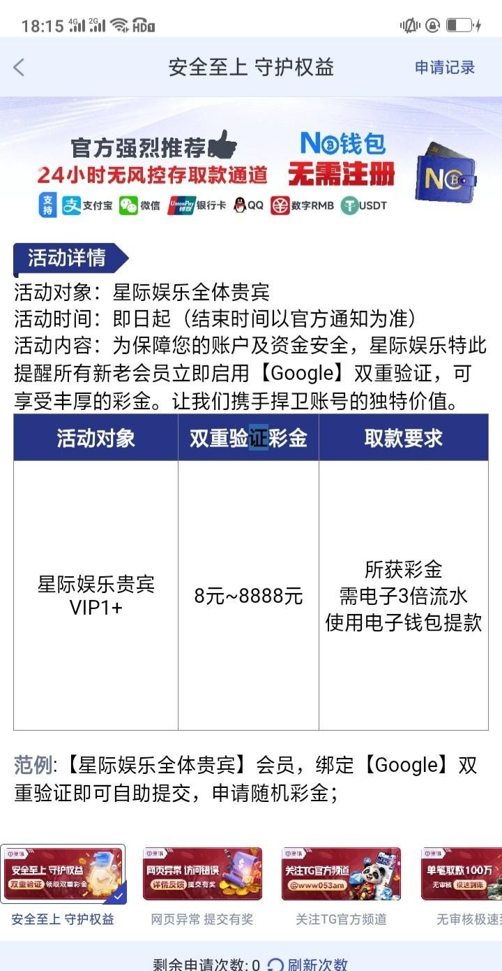 双重验证彩金重置了,最近领过彩金登录过的可以试试,我上个月刚领取过,这个月又可以了