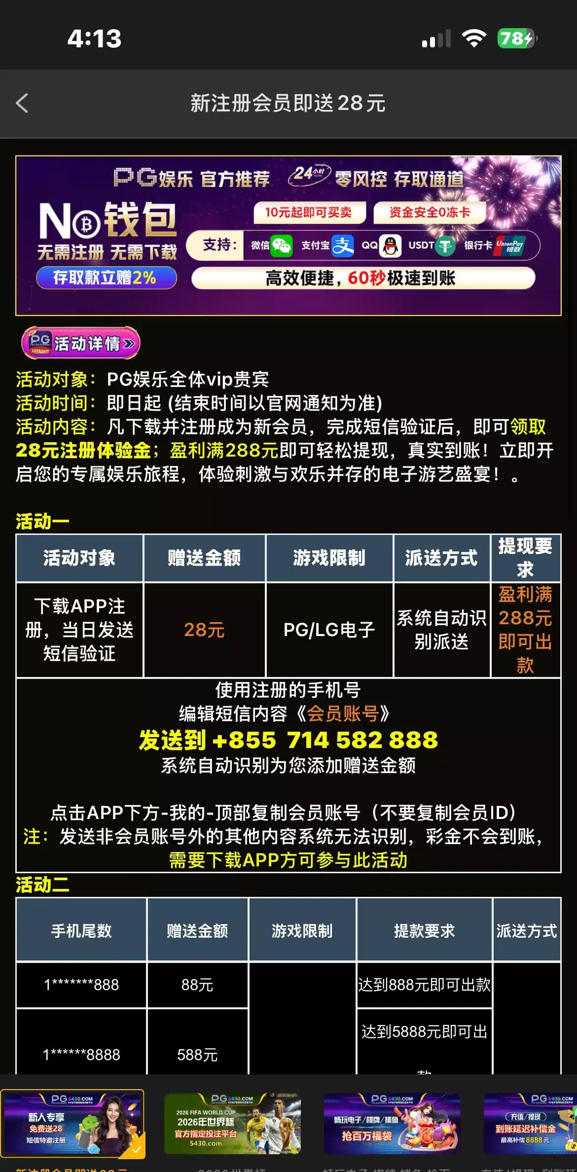 pg5430特邀送28 发短信来的 我发了短信几分钟到