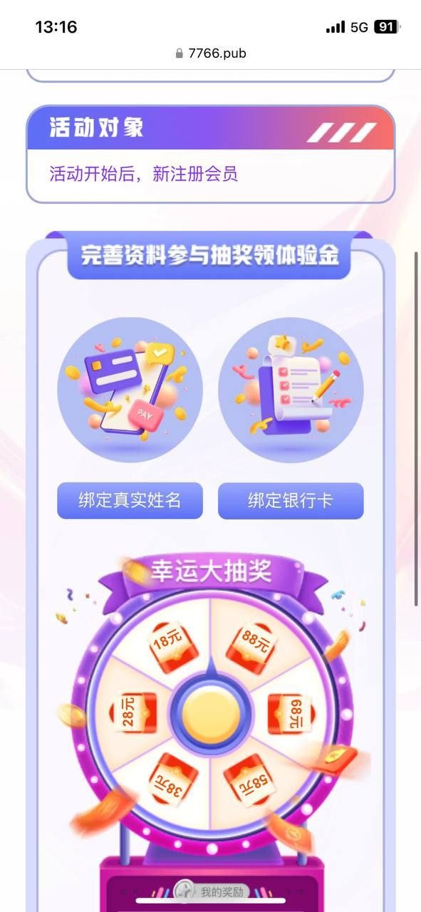 新用户注册绑卡完善信息,优惠里面找到活动自助申请彩金,建议关VPN信息实名一致去申请