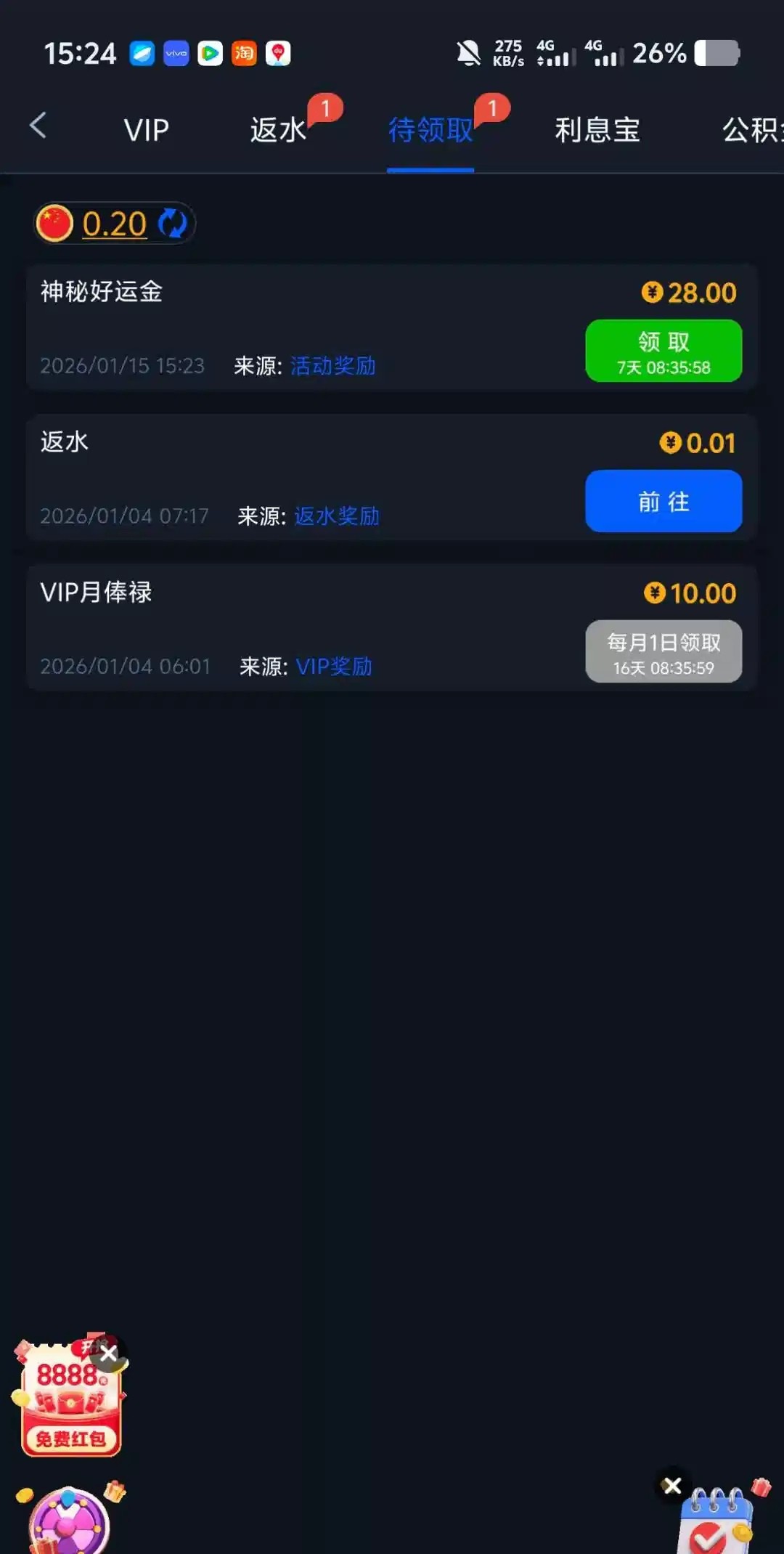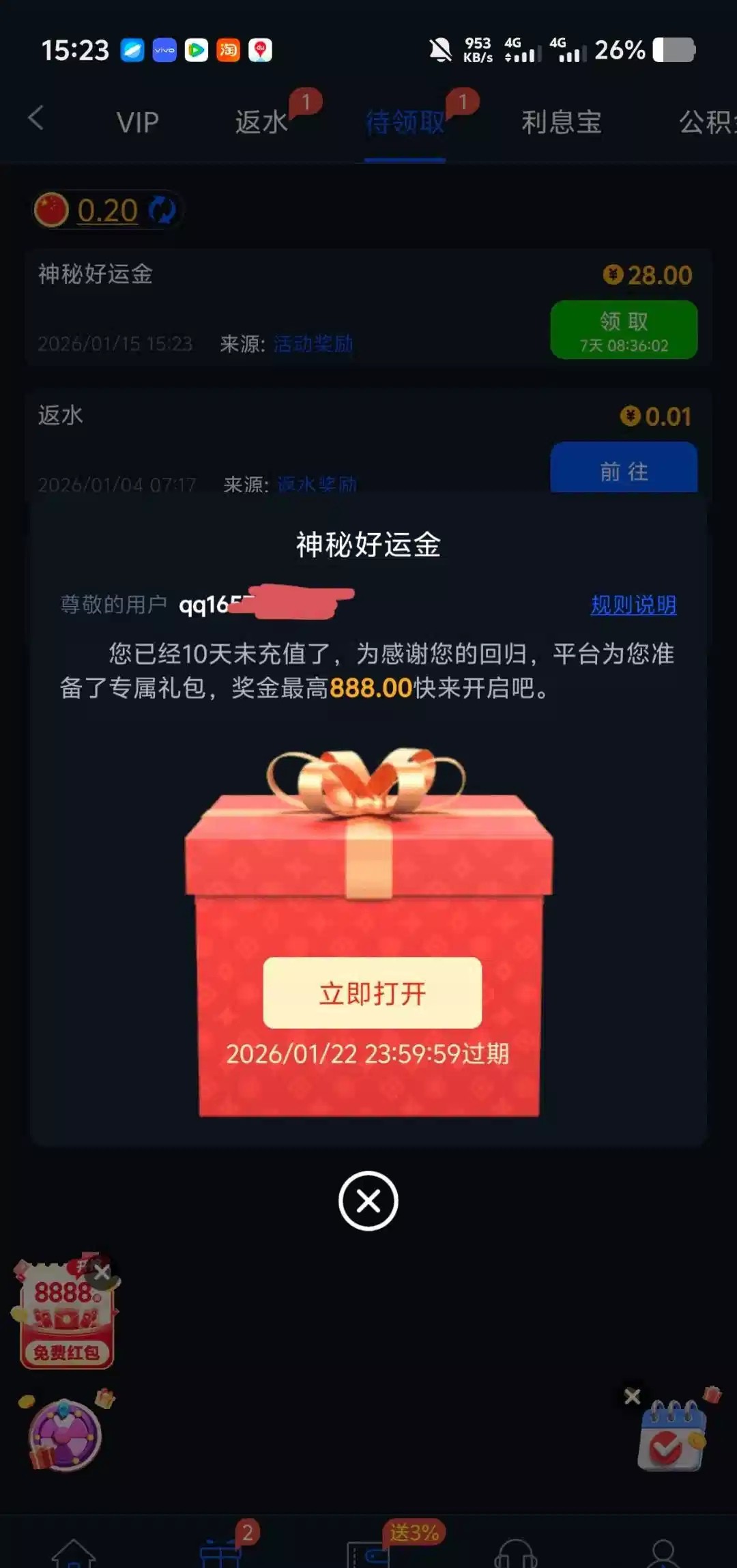 超过10天没有充值的,会赠送神秘彩金,有账号的就登录领取,
