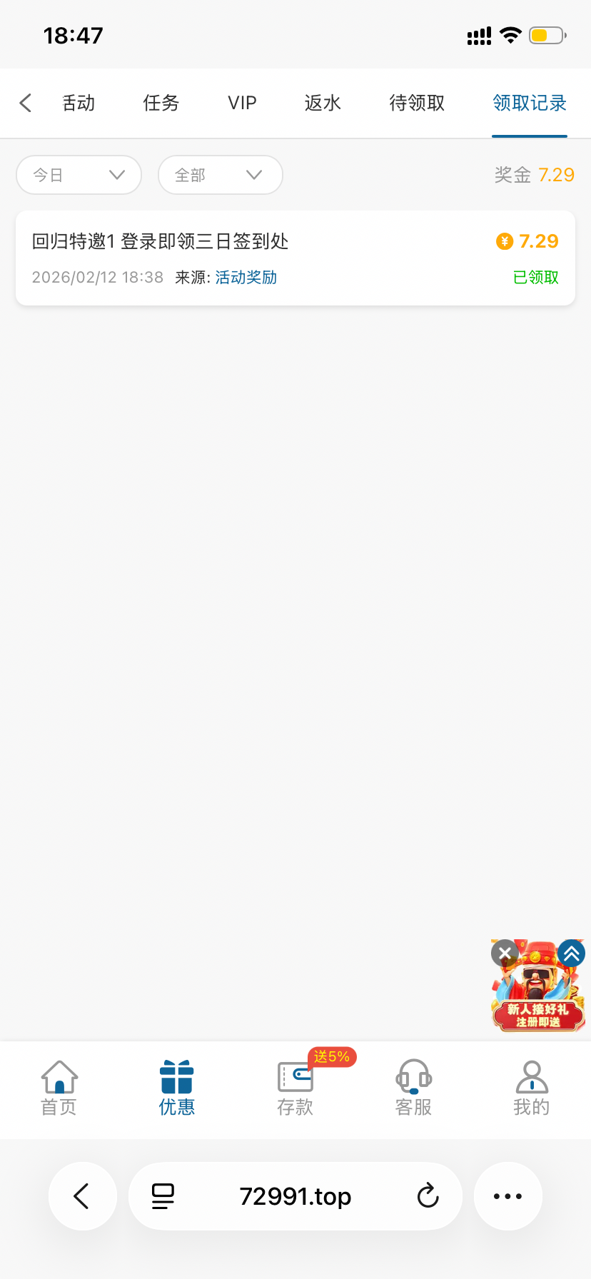 这台之前把我优惠全封了,今天接到电话说是恢复了然后又给了一次回归彩金
