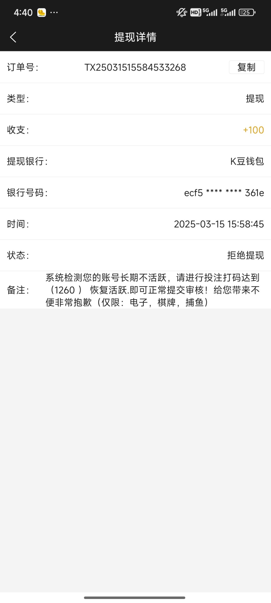 ikun4414 确实是黑台第二次提现50就违规下注了还好白嫖200