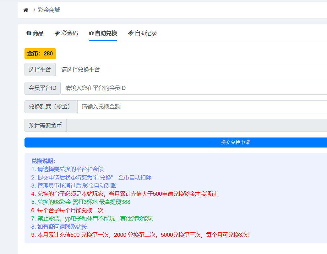 友情提示:本站金币兑换追梦金!必须是本站玩家符合要求才能自行兑换!
