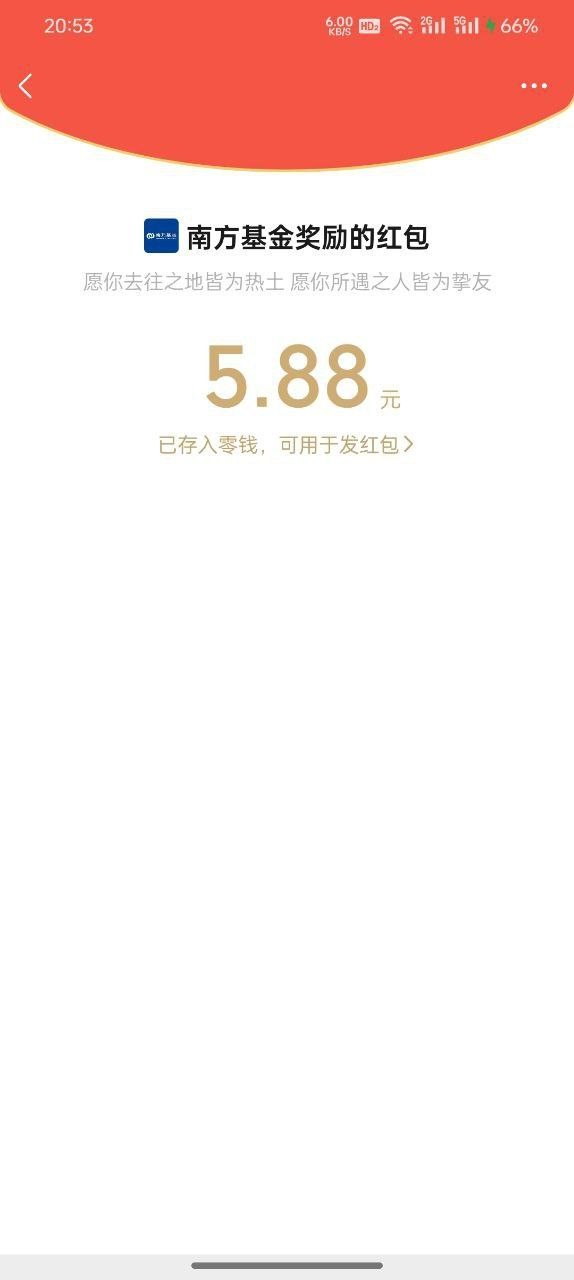微信搜索南方基金开户绑定微信账号,完成后主页领取5.88现金红包!
