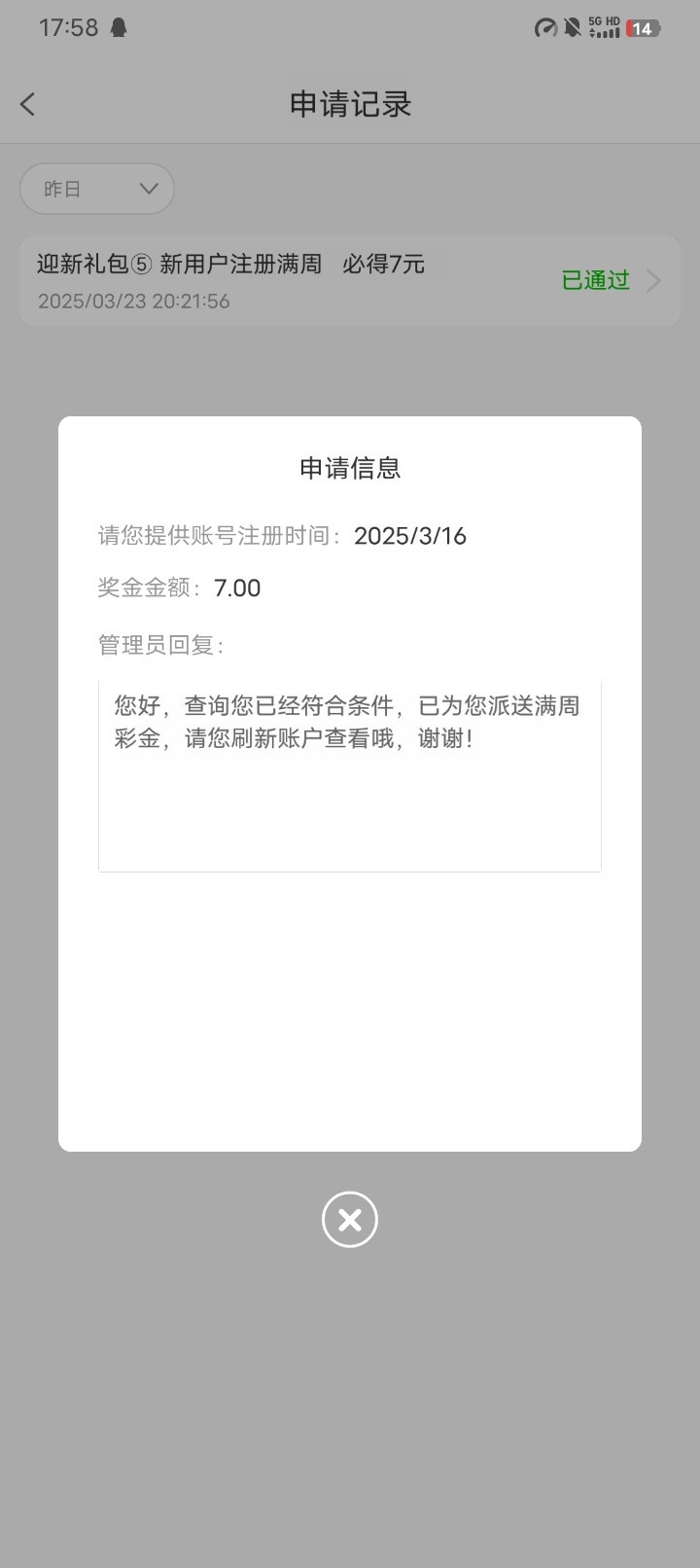 注册满7天给7块 提现已经到账了 你们可以去注册一下 地址 87.vip