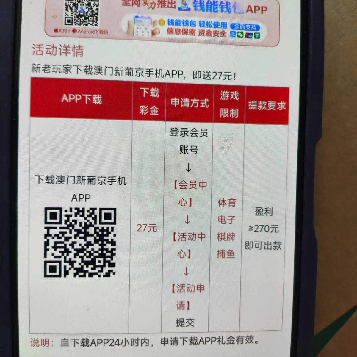 下载app注册完善信息,优惠找到活动自助申请下载app彩金,彩金只能玩电子棋牌捕鱼,打到270出款!
