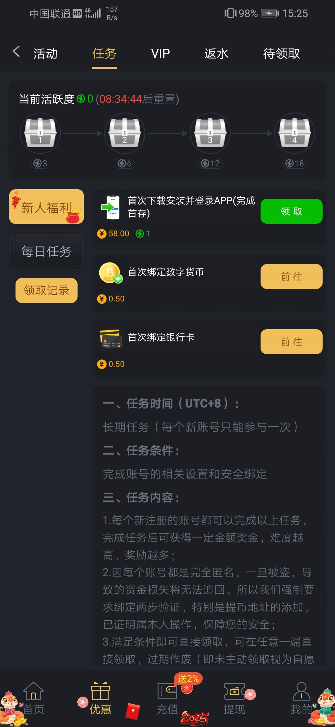 优惠→任务 自助领取即可